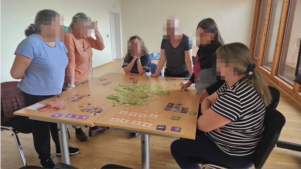 On échange les cartes… et il faut deviner le lieu de l’autre, pas toujours le même, en fonction de son choix de cartes, plus ou moins bizarre !