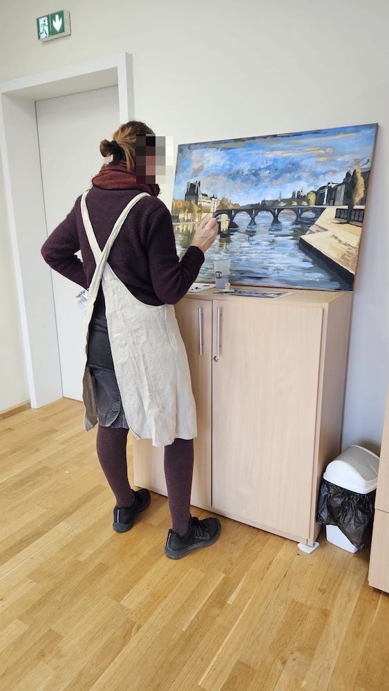 Grande table, de l’espace et de la lumière, c’est très bien pour les activités artistiques de toutes sortes !